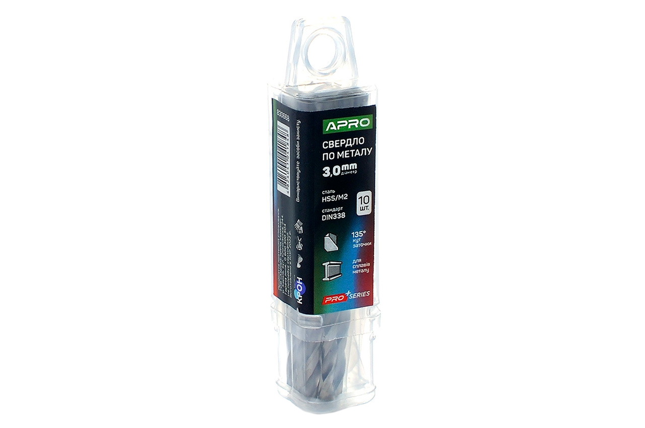 Свердло по металу Apro - призначене для свердління отворів у металевих матеріалах, включаючи сталь, чавун, алюміній та інші сплави. Діаметр 3,0 мм; Швидкорізальна сталь марки М2.