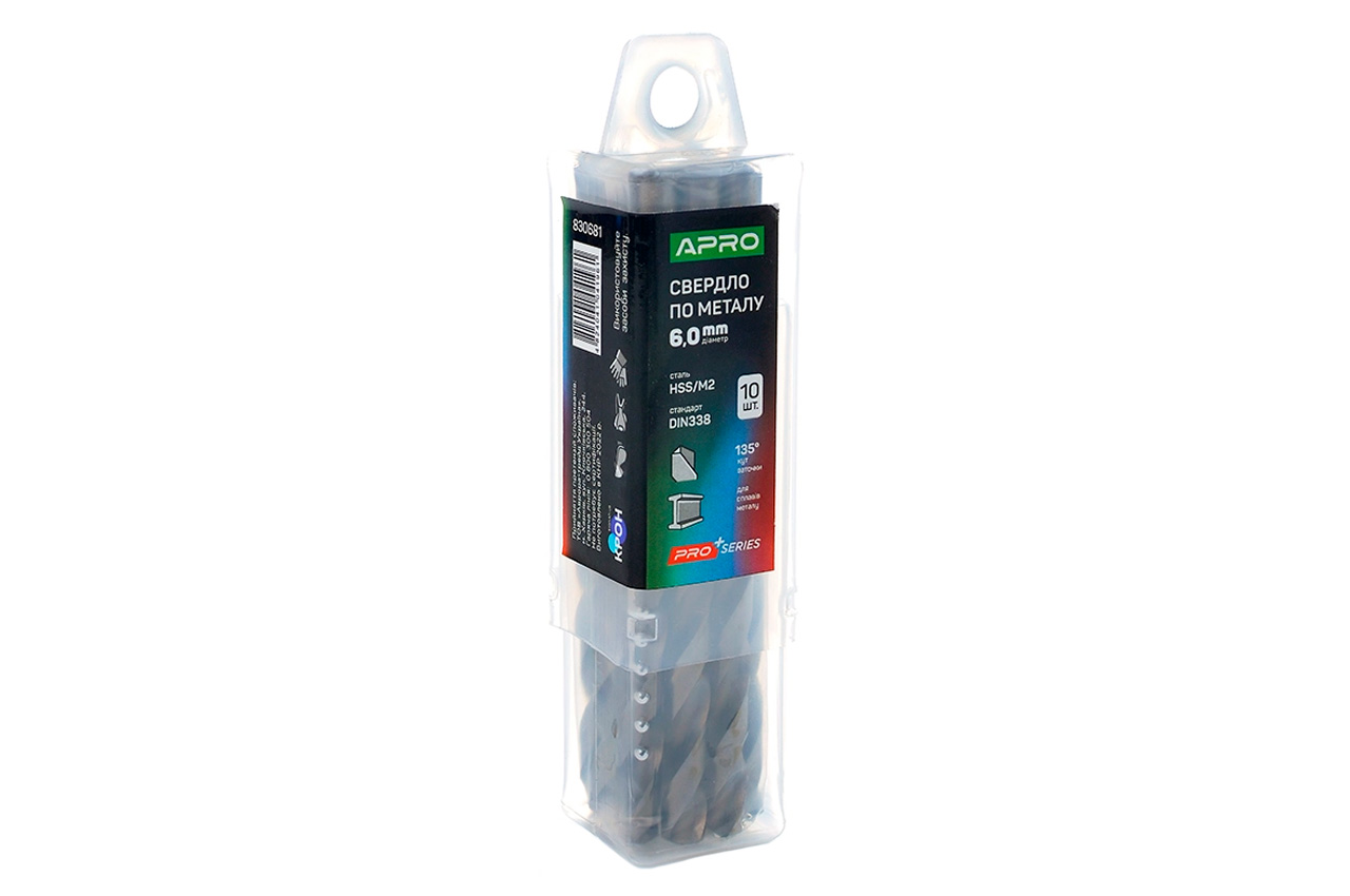 Свердло по металу Apro - призначене для свердління отворів у металевих матеріалах, включаючи сталь, чавун, алюміній та інші сплави. Діаметр 6,0 мм; Швидкорізальна сталь марки М2.