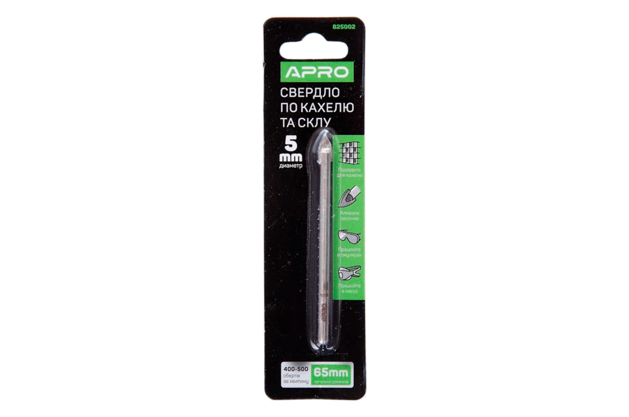 Списоподібне свердло призначене для свердління як глухих, так і наскрізних отворів у різних матеріалах, включаючи кахель, кераміку, скло, фарфор та інші подібні крихкі поверхні. Діаметр свердління - 5 мм, Довжина свердла 65 мм.