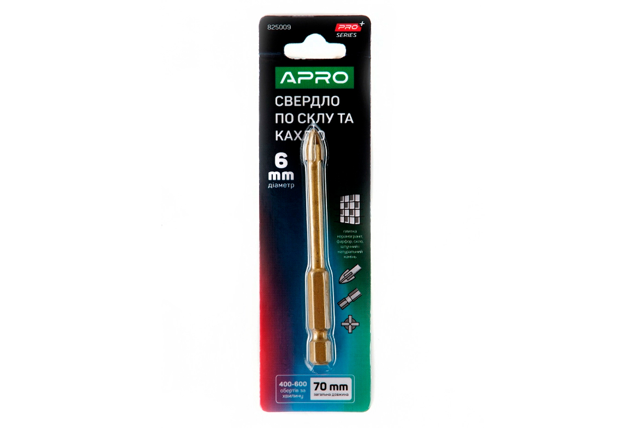 Свердло по склу та кераміці Apro - 6мм x 4 грані