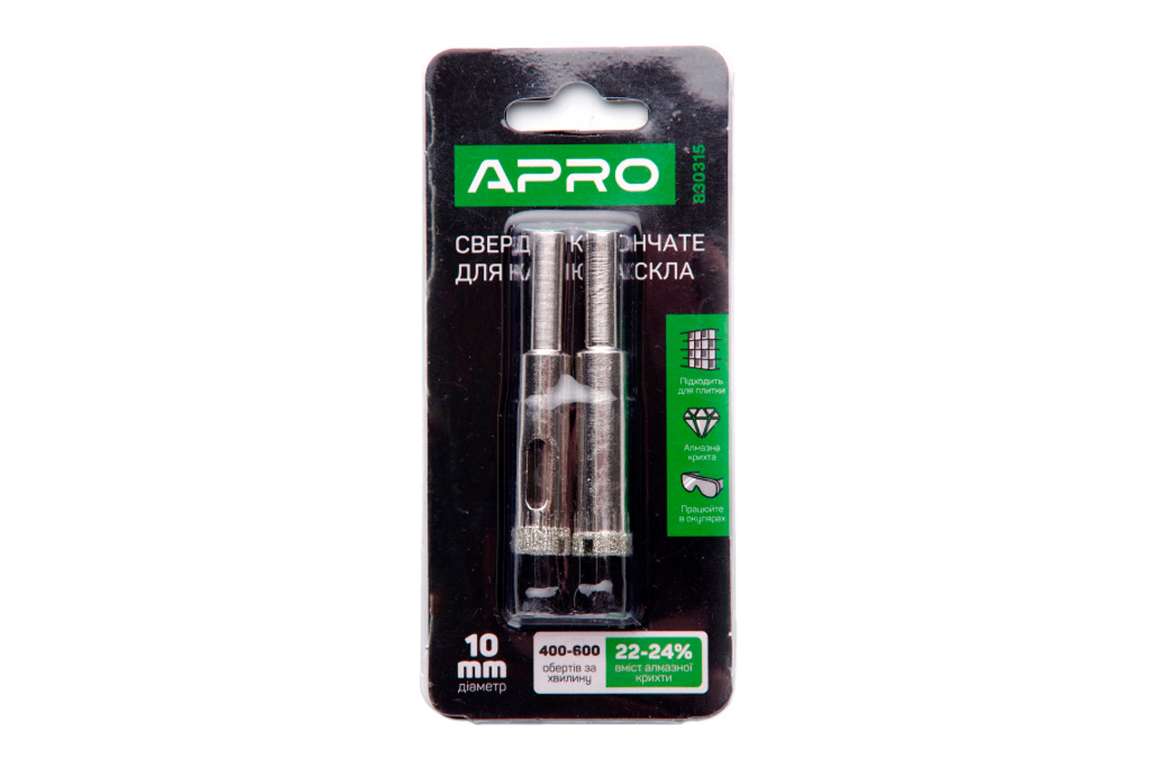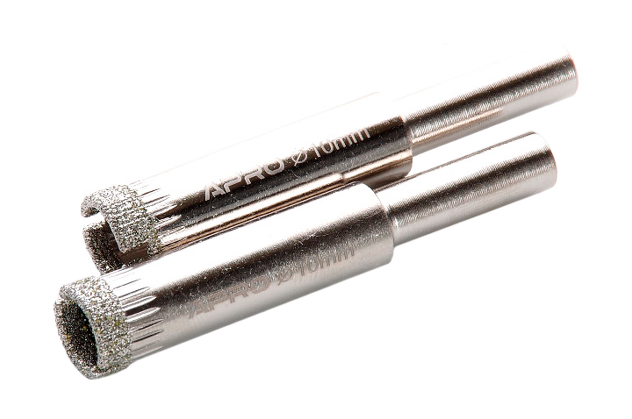 Свердло по склу та кераміці трубчасте Apro застосовуються для свердління отворів в оптичному та технічному склі, керамічної плитки, мармуру, кахлю. Діаметр свердла 10 мм