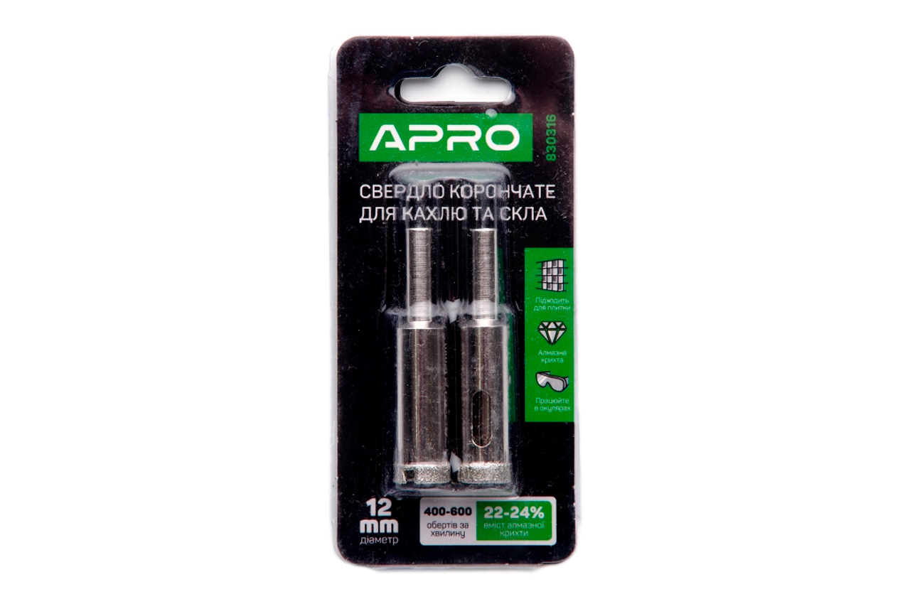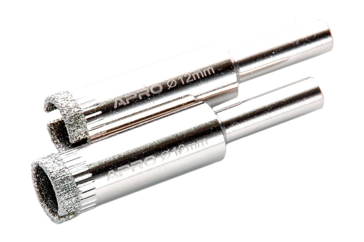 Свердло по склу та кераміці трубчасте Apro застосовуються для свердління отворів в оптичному та технічному склі, керамічної плитки, мармуру, кахлю. Діаметр свердла 12 мм