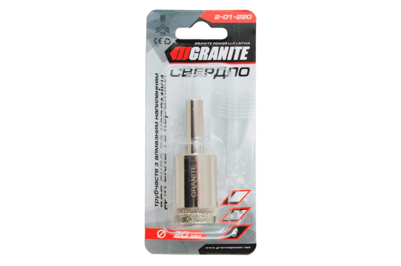 Свердло трубчасте по склу та плитці Granite 20 мм свердло Granite трубчасте з алмазним напиленням для скла та плитки. Застосовувати тільки в неударном режимі, охолоджувати водою.