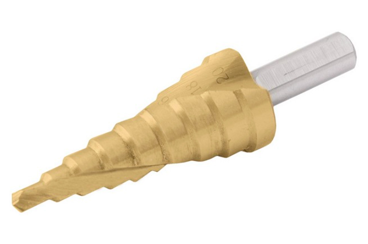 Ступеневу свердло для створення отворів різних діаметрів в листовому матеріалі (стали, кольорових металах, пластику і т.п.).