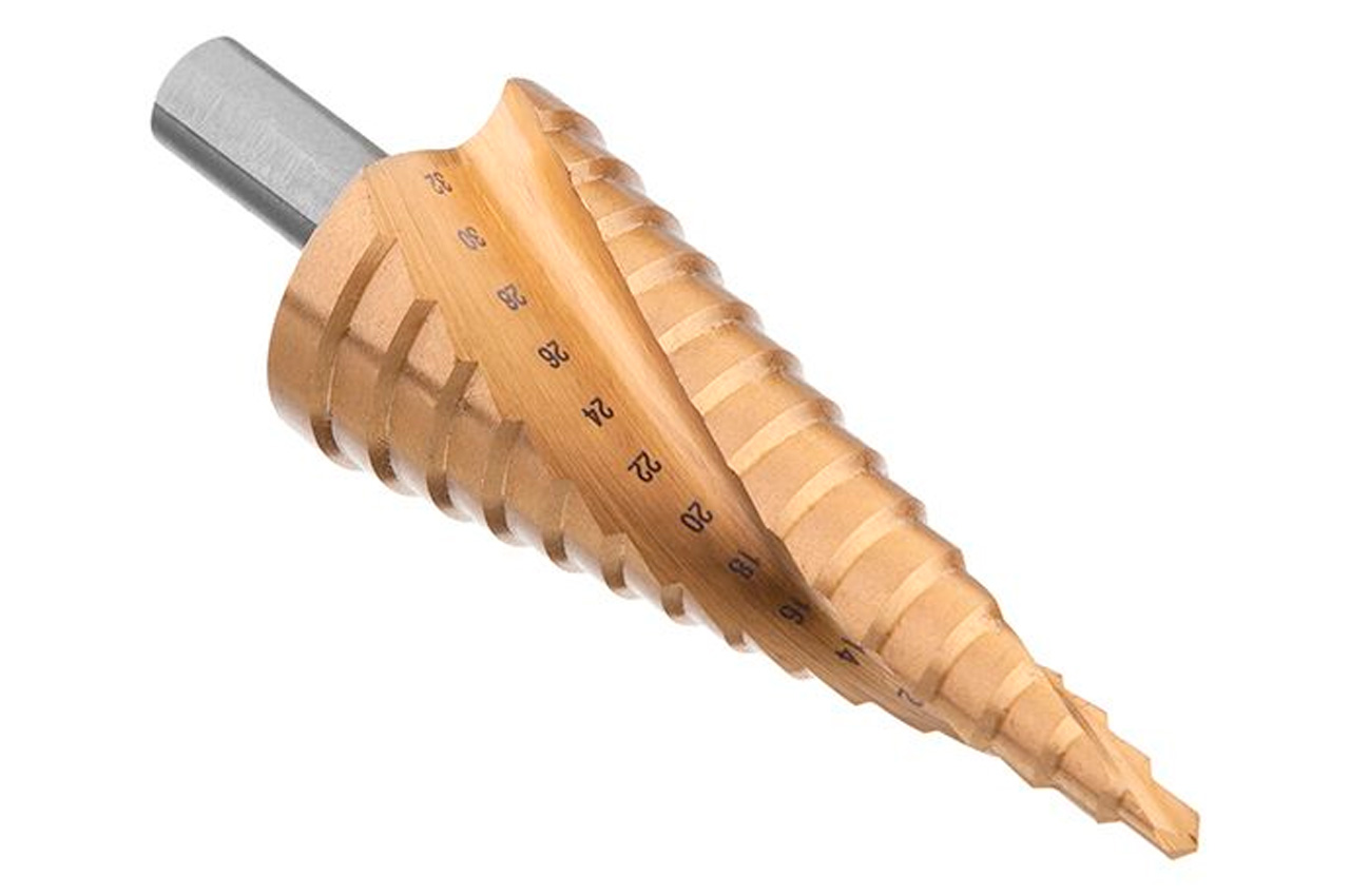 Свердло ступінчасте по металу Intertool - чудовий помічник для делікатного свердління отворів у листових металах та пластиці. Ступінчаста структура дозволяє свердлити отвори різного діаметра 4-32 мм. Свердло має конічну форму, з діаметром, що збільшується, на 2 мм за крок і глибиною 4 мм. Свердло виконане з HSS (High-Speed Steel) сталі із твердістю за стандартом DIN 340.