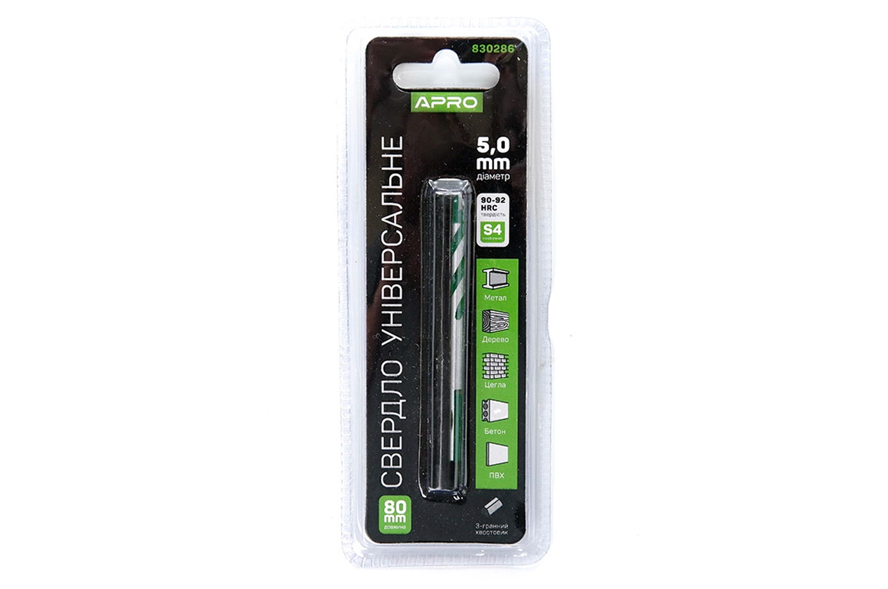 Свердло універсальне Apro - підходить для свердління по металу, стекла, плитки, мармуру, граніту, інших твердих матеріалів. Наконечник із високоякісного твердого сплаву. Універсальне заточування напитки гарантує максимально точне, легке та акуратне свердління. Глибока спіраль дозволяє швидке відведення пилу та стружки.
