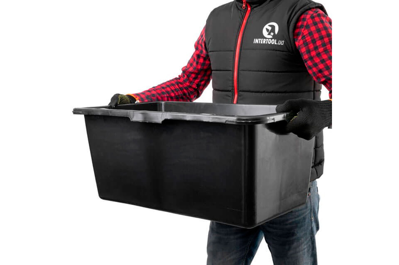 Таз будівельний INTEROOL KT-0065 прекрасний помічник по господарству, буде корисний під час ремонту, а також на будівництві. Ідеально підходить для замішування розчинів, сумішей, приготування фарб, тощо. Таз зносостійкий і надійний, виготовлений з поліпропілену. Такий матеріал відрізняється високою міцністю, твердістю і теплостійкістю. Таз стійкий до низьких температур і здатний до деформації при сильних навантаженнях, що запобігає злам і поломку пластика. Також характеризується високою стійкістю до кислот, лугів, розчинів солей і до інших агресивних середовищ. Легко очищається від розчинів. Таз витримує значні навантаження завдяки посиленим бортах з ребрами жорсткості. Особливості: Універсальна ємність для приготування будівельних сумішей, Міцний, зносостійкий матеріал виготовлення - поліпропілен Ребра жорсткості по бортах для додаткової міцності Обсяг лотка: 65 л; Форма: прямокутна; Габаритні розміри: 710 * 400 * 300 мм