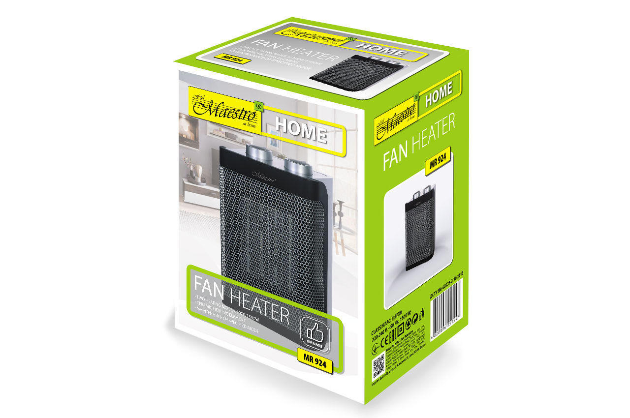 Тепловентилятор Maestro MR-924 підходить для використання вдома і в офісі. Він має стильний ергономічним дизайном і досить компактними габаритами. За допомогою цього приладу ви зможете зігрітися навіть в найсуворіші холоду. Досить швидко розігрівається, так як має хорошу потужність. Ви оціните простоту управління даного приладу. Тип даного обігрівача - термовентилятор, і він здатний обігріти приміщення, площею 20 м2. Додатково варто виділити такі технічно особливості моделі, як регулювання температури, вимикач зі світловим індикатором, захист від перегріву.