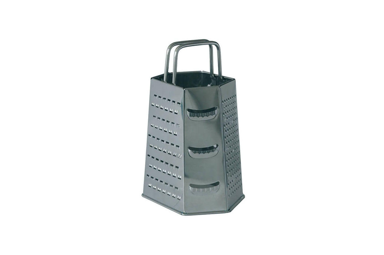 Багатофункціональна терка для нарізування і подрібнення різних продуктів. 6 - стороння з ручкою. Ножі виготовлені з нержавіючої сталі.