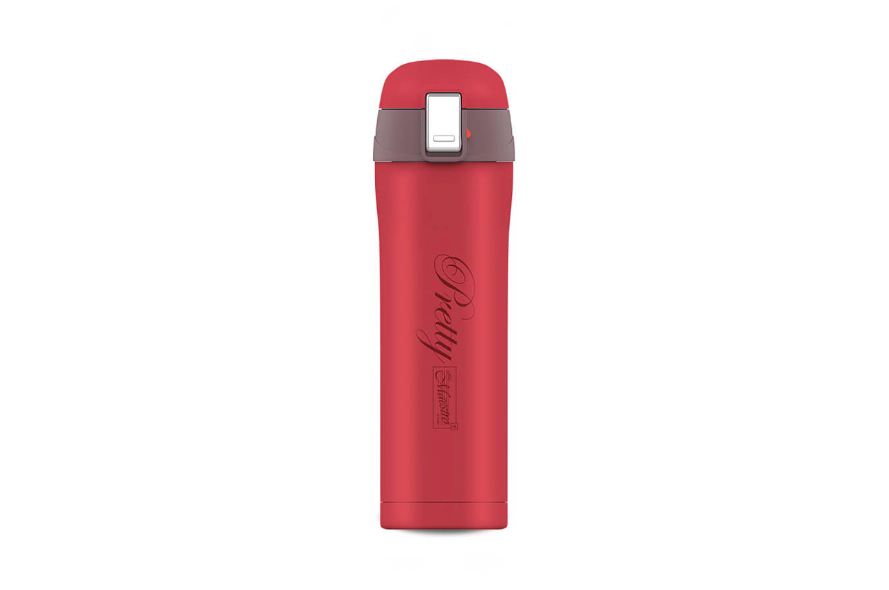 Приваблива термокружка MAESTRO на 400 мл. з оригінальним і практичним дизайном, призначена для зберігання гарячих або холодних напоїв. Термокружка суцільнометалева з високоякісної нержавіючої сталі 18/10 з удароміцними стінками. Термокружа має вакуумну термо ізоляцію і зберігає температуру продуктів тривалий час і має зручну багатофункціональної пробкою - кришкою з кнопкою автоматичного відкриття кришки. Термокружка знадобиться на роботі, в школі, в подорожі і спорт. Компактні розміри дозволяє носити термокружку з собою, а стильний і функціональний новий дизайн сподобається будь-якій людині.