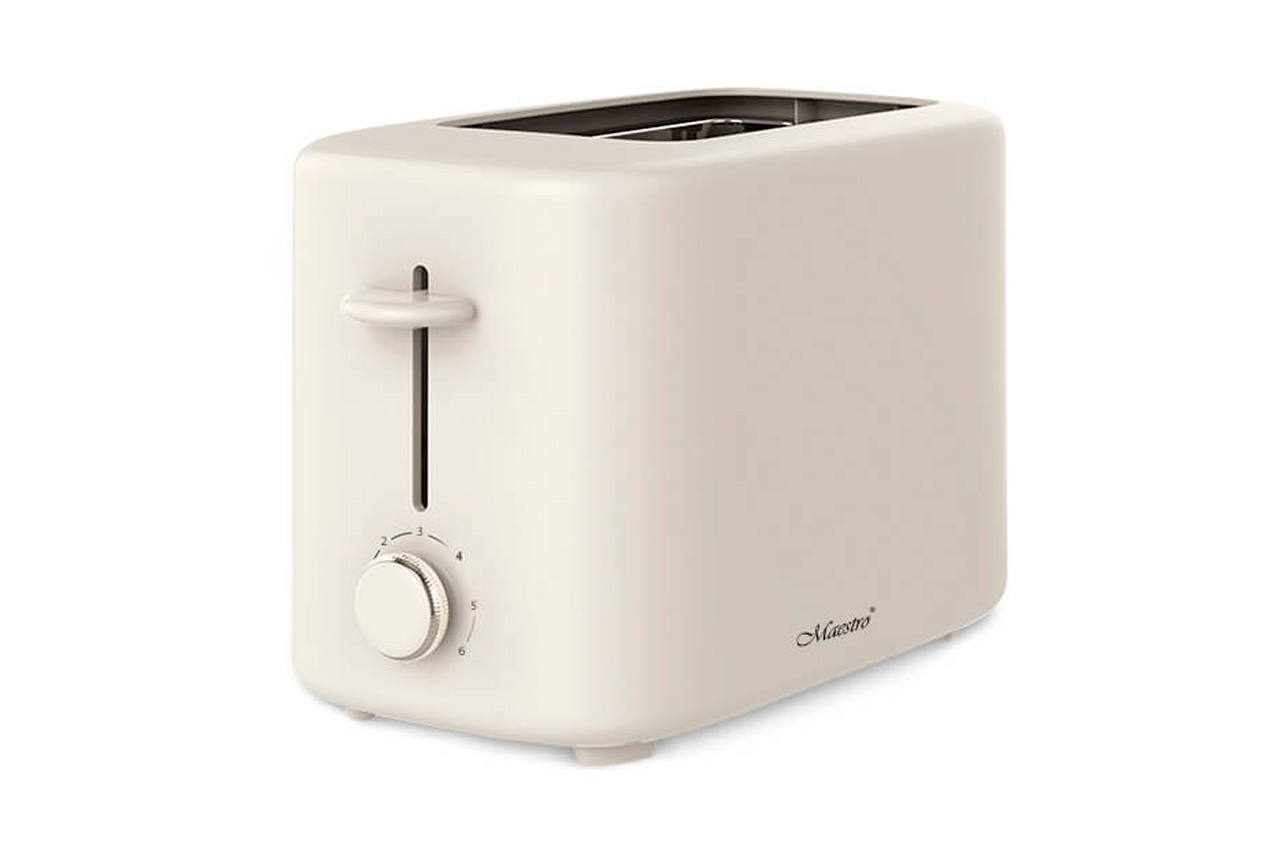 Тостер Maestro MR 700 потужністю 750 Вт із 6 режимами прожарювання випускається у зручному пластиковому корпусі білого кольору. У торці корпусу розташовані ручка перемикач режимів та кнопка "стоп". Тостер призначений для підсмаження шматочків хліба з можливістю утворення хрусткої скоринки.