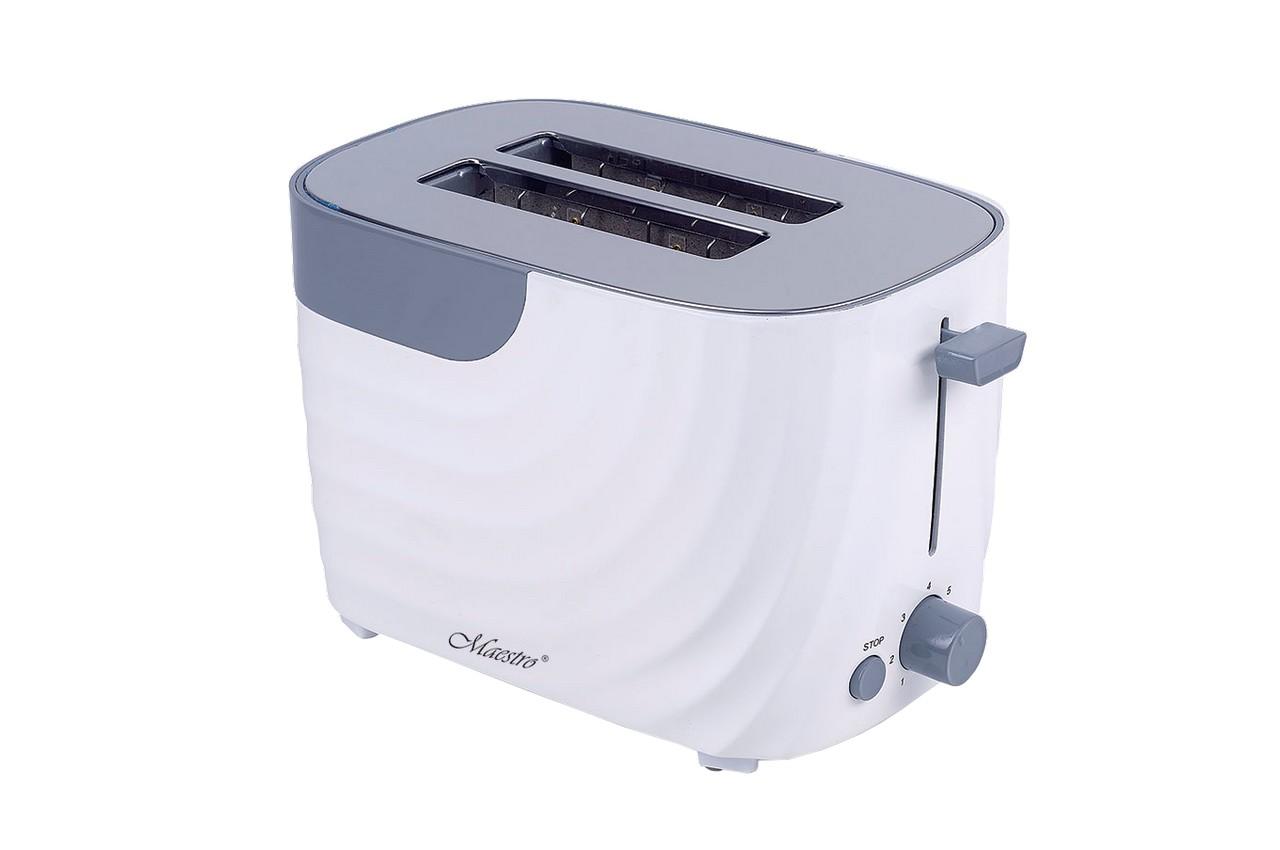 Тостер Maestro MR 706 потужністю 700 Вт має 7 режимів прожарювання, випускається у зручному пластиковому корпусі білого або чорного кольору. У торці корпусу розташовані ручки вибору режимів та кнопка "скасування". Тостер призначений для підсмаження шматочків хліба з можливістю утворення хрусткої скоринки.