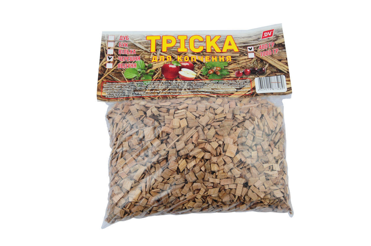 Фруктова тріска для копчення в домашніх і промишеннних коптильнях. Тріска виготовлена з екологічно чистої породи, без кори і гнилі. Підходить як для гарячого копчення, так і для холодного копчення в коптильнях будь-якого класу.