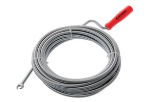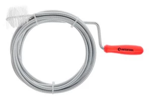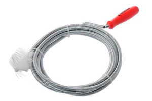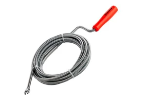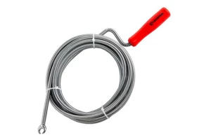 Ручний сантехнічний пристрій для чищення труб застосовується у випадку, коли два дбайливіші способи вже не діють: не допоміг ані вантуз, ані спеціальні хімічні засоби. Цей інструмент дозволяє ефективно позбутися пробки, що утворилася всередині труби. Призначений для прочищення каналізації у квартирах та приватних будинках. Пристрій є ручкою, до якої кріпиться основний пластиковий корпус (барабан) з намотаним тросом всередині. Завдяки такому компактному зберіганню довгого троса, у вас більше немає необхідності змотувати його вручну. Розмотати трос на потрібну довжину можна за допомогою ручки, розміщеної на барабані. Обертаючи її, ви збільшуєте довжину троса, а також трос здійснює обертальні рухи. Сам трос виконаний у вигляді порожнистої спіралі, виготовлений з оцинкованої сталі діаметром 6 мм, довжиною 4 метрів. Він дуже гнучкий і при цьому міцний, легко проходить вигин каналізації з колінними переходами. Кручений загострений наконечник для кращої прохідності.