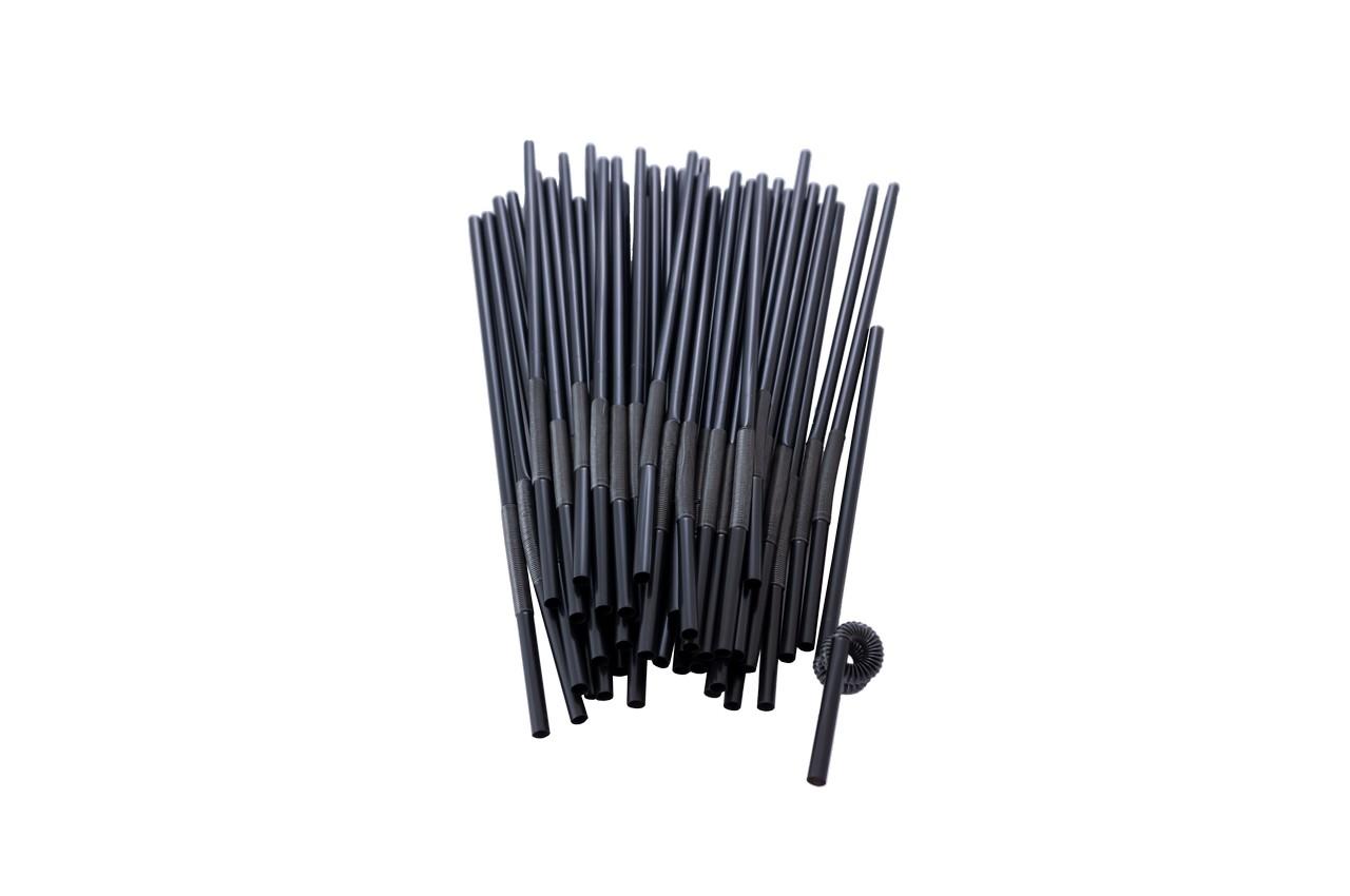 Трубочка для напоїв Empire - 260 x 6 мм з вигином Чорна (100 шт.)