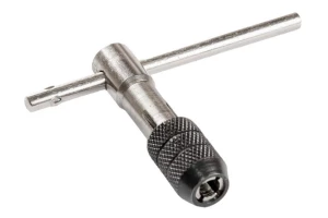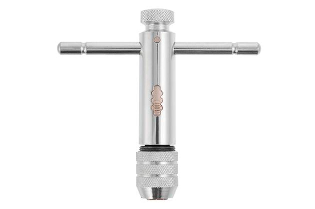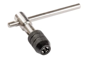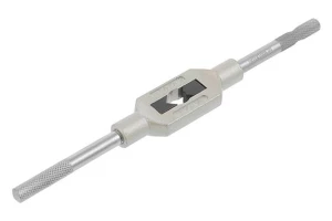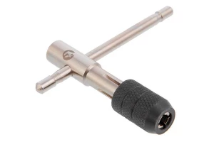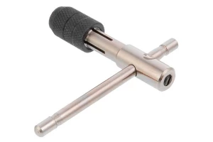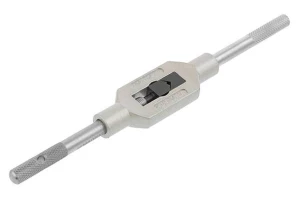 Утримувач для мітчиків призначений для фіксації мітчиків, розмірами від М3 до М12 з наступним нарізанням різьблення в металі. Утримувач з достатньою простою конструкцією з хромованим покриттям. Знімна рукоятка, що дозволяє компактно зберігати інструмент. Затискна частина розсувається для надійного фіксування мітчиків у патроні.