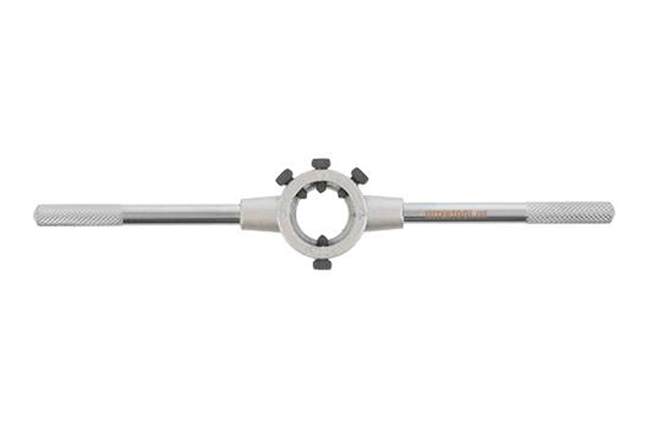 Утримувач призначений для фіксації плашок, розмірами M3, М4, М5, М6 з наступним нарізанням зовнішньої різьби. Утримувач досить простої конструкції з хромованим покриттям. Розмір під плашку регулюється за допомогою гвинтів, вони також щільно фіксують плашку проти ковзання, що забезпечує точно нарізане різьблення, без перекосів. Ручки тримача з насічками для зручної роботи проти ковзання.
