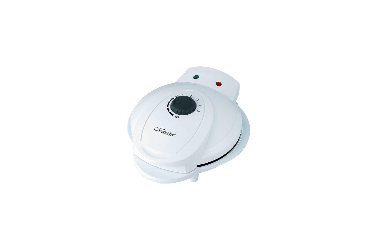 Вафельниця Maestro MR 715 з регулятором температури, має 5 режимів роботи, випускається у зручному пластиковому корпусі білого кольору з ергономічною клямкою на ручці. Зверху розташовані два світлові індикатори: індикатор мережі та індикатор готовності, а також ручка регулювання потужності. Внутрішні пластини з антипригарним покриттям мають поверхню типу вафлі. Вафельниця призначена для приготування вафель в домашніх умовах.