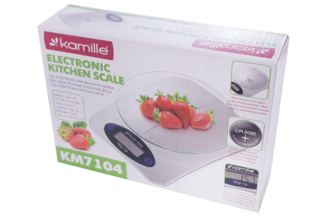 Кухонні ваги - абсолютно незамінний аксесуар на Вашій кухні. Кухонні ваги Kamille 7104 визначають вагу аж до зернятка, тому Ви точно не помилитеся під час приготування святкової вечері. Компактні розміри кухонних ваг Kamille 7104 не займають багато місця, і дозволяють без особливих зусиль заховати їх в кухонних шафах або ящиках, що істотно заощадить Вам простір на використовуваних кухонних поверхнях.