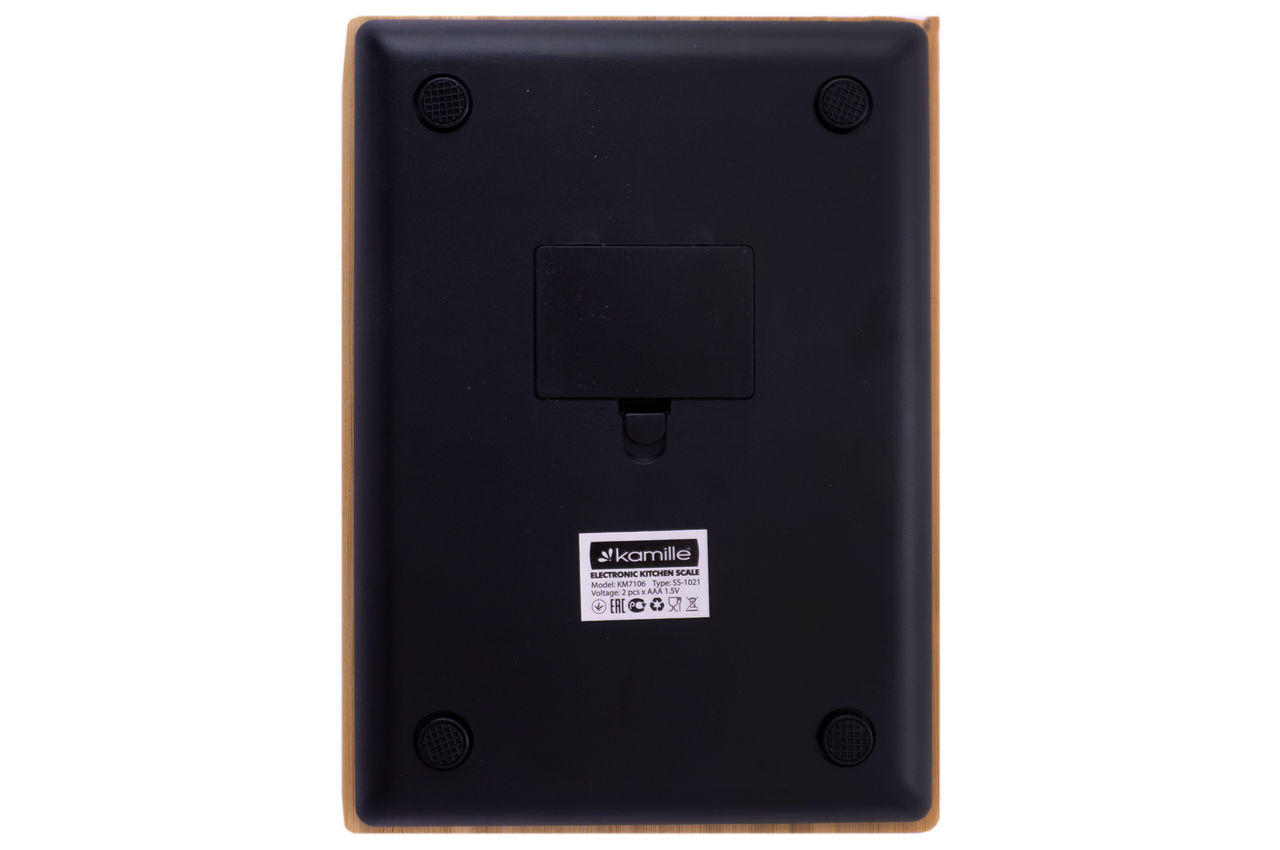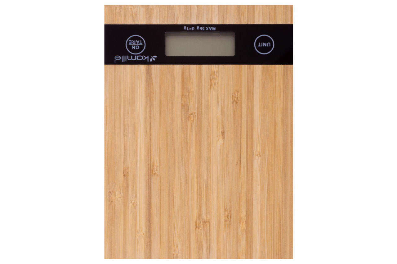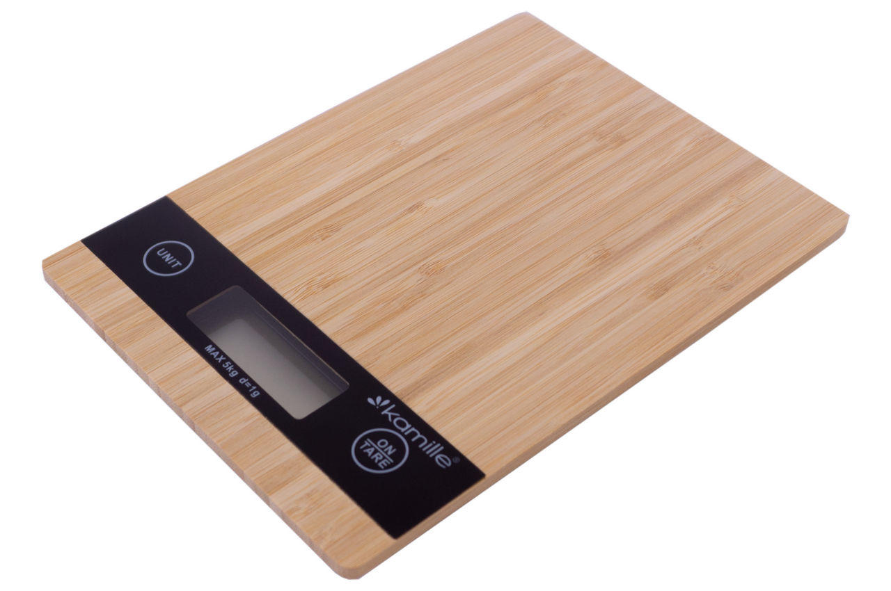 Електронні ваги для кухні Kamille KM-7106 поєднують у собі принципову точність та стильний зовнішній вигляд, надійність та довговічність. Корпус Kamille KM-7106 зроблений із пластику та бамбука. Ваги зручні в експлуатації, мають високу точність і додаткові функції. Вони можуть запам'ятовувати вагу тари, забезпечені функцією перемикання одиниць виміру, функцією автовимкнення. Кухонні ваги мають зручне сенсорне керування та цифровий дисплей.
