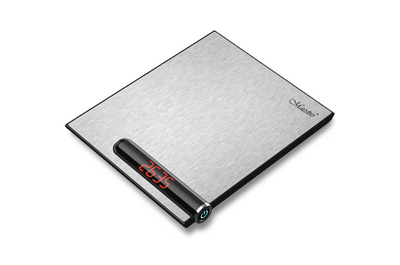 Електронні кухонні ваги Maestro призначені для зважування продуктів у побутових умовах. Ця модель ваг стане не тільки улюбленим та незамінним помічником на Вашій кухні, але й стильним доповненням до дизайну на будь-якій кухні. Характеристики: - РК-дисплей з підсвічуванням - Високоточний вимірювальний датчик - Автоматичне вимкнення - Індикатор заряду батареї - Індикатор навантаження - Максимально допустима вага 5кг - Ціна поділу: 1г