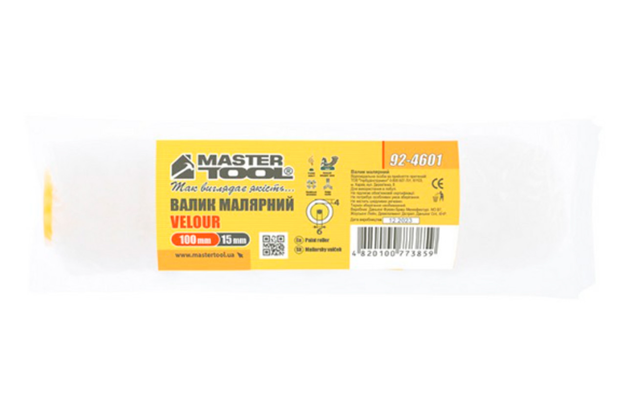 Валик велюр Mastertool - 6 х 15 х 100 мм