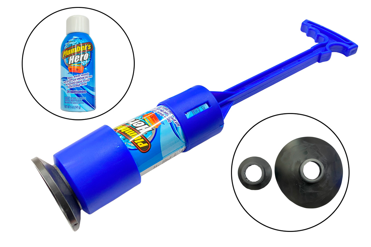Вантуз PLUMER'S HERO - це потужний інструмент для прочистки труб без бруду та хімії. Ідеальний для усунення засмічень у ванні, раковині, унітазі чи душі. Завдяки використанню стисненого повітря цей вантуз створює миттєвий тиск, який ефективно пробиває навіть найскладніші закупорки. Не потребує електрики чи батарейок — працює за принципом поршня. У комплекті — змінні насадки для різних типів сантехніки та балон зі стисненим газом. Як користуватися: 1. Виберіть відповідну насадку та приєднайте до приладу. 2. Закріпіть насадку щільно на зливному отворі. 3. Зарядіть балон зі стисненим повітрям. 4. Натисніть ручку — імпульс тиску проб'є засмічення. 5. За потреби повторіть процедуру. Однієї ємності спрею для задування в отвори зливів, за твердженням виробника, достатньо на 20 застосувань.