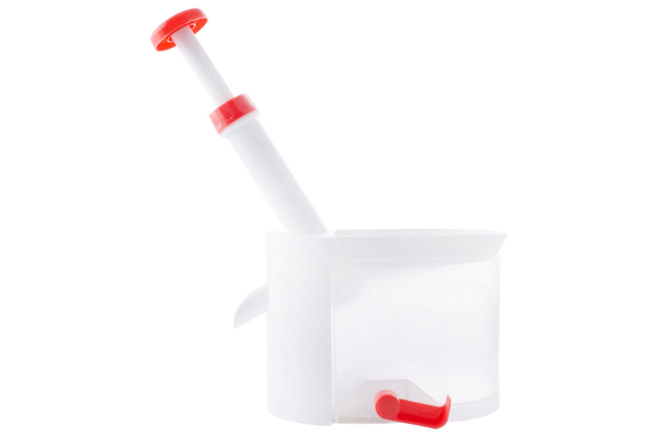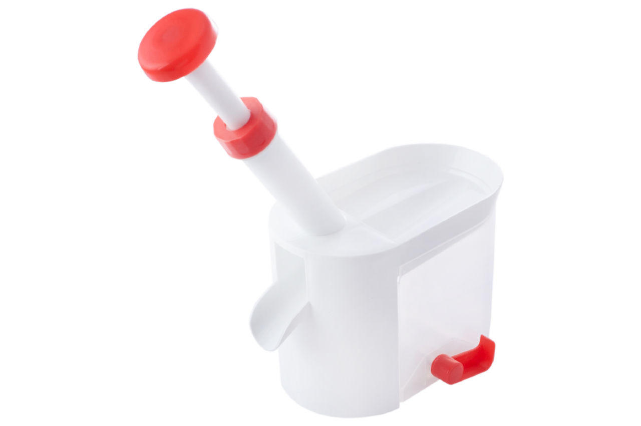 Машинка для видалення кісточок з вишні Empire 2144 Якщо ви любите консервувати на зиму вишні; але Вам абсолютно не подобатися чистити їх від кісточок; то Empire 2144 це ідеальне рішення цієї проблеми. Вішнечістка Empire 2144 це унікальне пристосування для видалення кісточок з вишень. Таке пристосування допоможе очистити велику кількість ягід за маленький проміжок часу. Використовувати прилад досить легко - просто кладете ягоди в спеціальний відсік; звідти вони по одній штуці скочуються в невеликий отвір. При натисканні на важіль ягоди проколюються; і з них випадає кісточка. Ягоди скочуються в ємність; а кісточки - в спеціально контейнер. З таким приладом ваші руки і кухня залишаться ідеально чистими; і вам не доведеться годинами відтирати бризки зі стін. Виготовлений Empire 214 з екологічно чистого нетоксичного пластика.