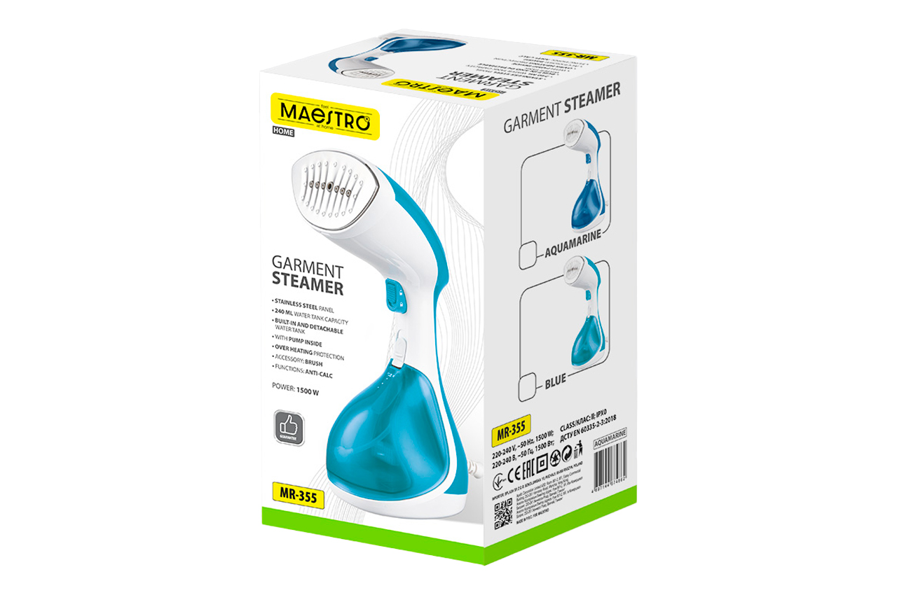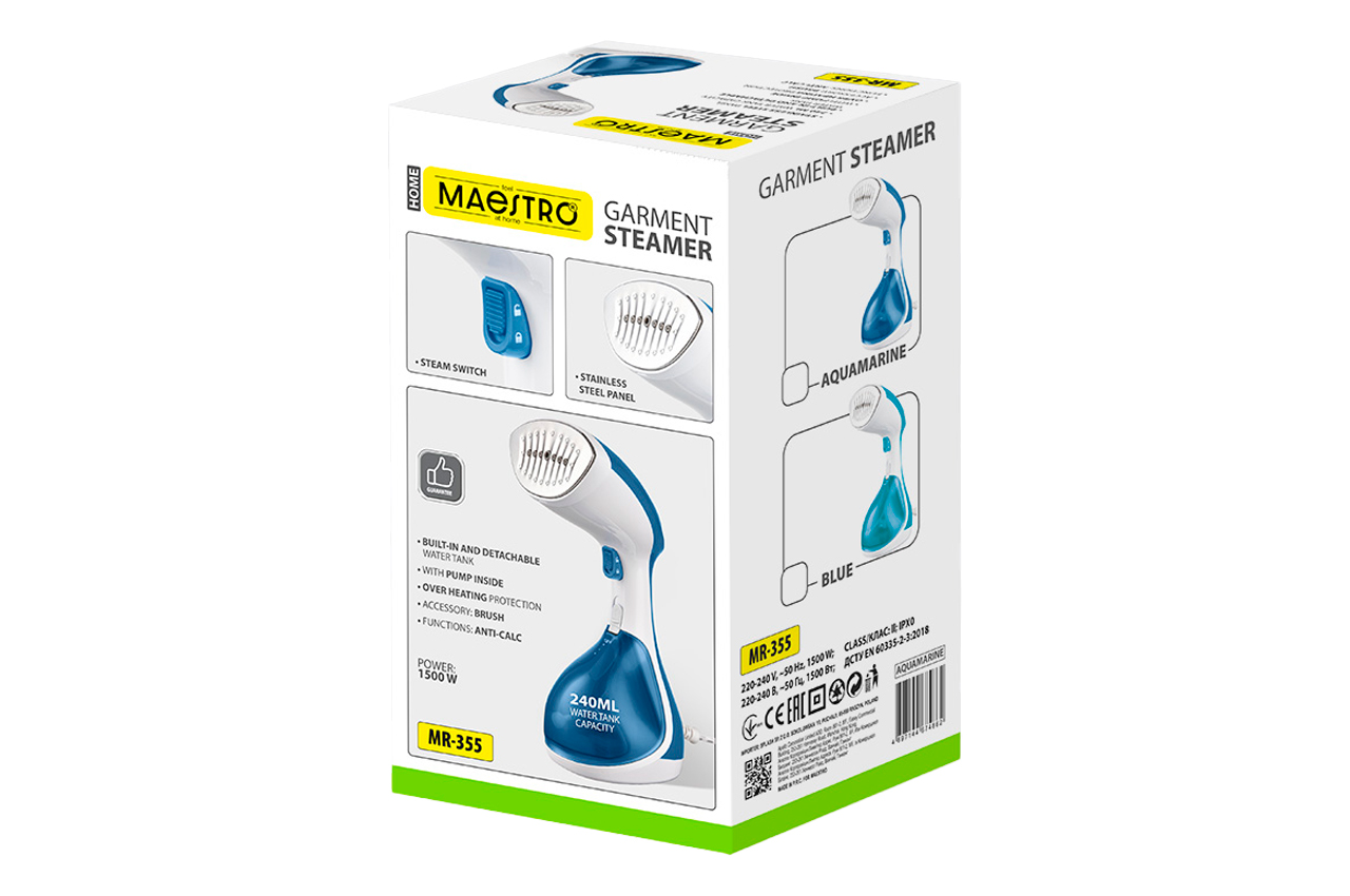 Відпарювач Maestro MR 355 потужністю 1500 Вт, з резервуаром 240 мл призначений для прасування та відпарювання речей у вертикальному положенні. Функціональність, дизайн та відповідність стандартам якості гарантують Вам надійність та зручність у використанні даного приладу.