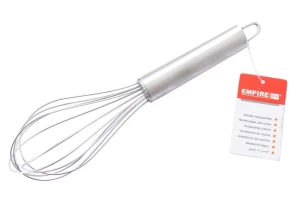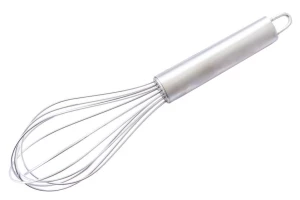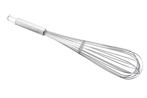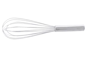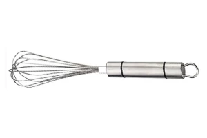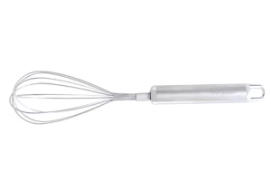 Віночок - незамінний атрибут на кухні у господині. Незважаючи на велику кількість різних електронних замінників, будь то блендер, комбайн, міксер і т.д., ми не змінюємо старим, перевіреним віночком. Швидко збити омлет, перемішати невелику кількість тіста на млинці, збити яйця, змішати соус і при цьому без необхідності мити громіздку електро техніку з насадками. Характеристика товару: Нержавіюча сталь. Довжина віночка: 40 см.