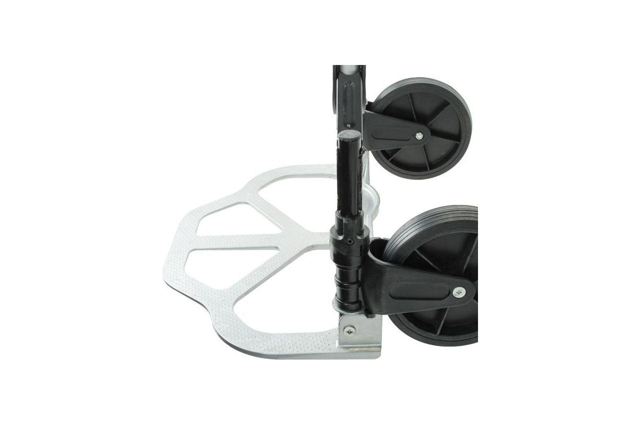 Ручний візок здатний значно скоротити витрати часу та сил на переміщення вантажів. Візок виготовлений з алюмінієвого сплаву, служить надійно та довговічно. Висувна ручка, зручна по висоті (1090 мм), фіксується замком як у складеному, так і розкладеному вигляді. Відкидна алюмінієва платформа із габаритами 490х280 мм дозволяє швидко підхоплювати вантаж. Діаметр колеса: 170 мм; Вантажопідйомність: до 80 кг;