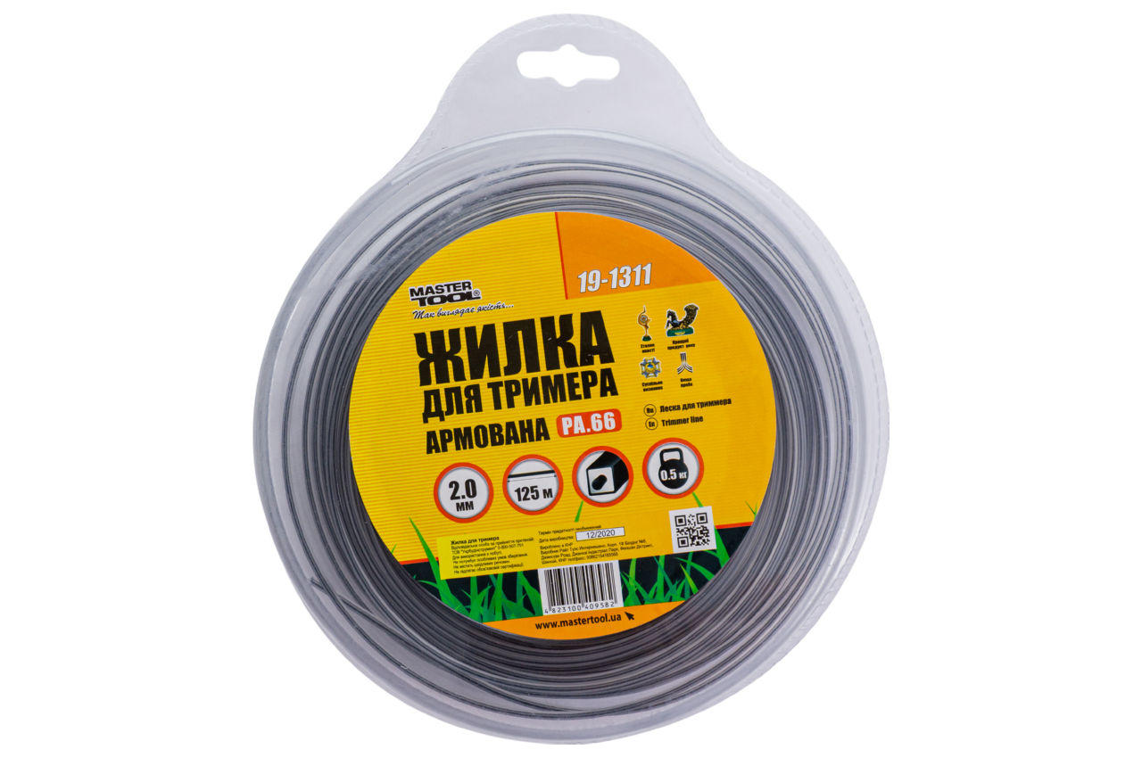 Волосінь для тріммера Mastertool - використовується в тримерах для скошування трави. Призначена для заправки в котушковий механізм триммеров. Довжина 125 м; Форма перетину: квадрат; Переріз 2,0 мм.