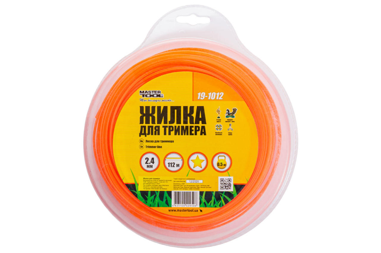 Волосінь для тріммера Mastertool - використовується в тримерах для скошування трави. Призначена для заправки в котушковий механізм триммеров. Довжина 112 м; Форма перетину: зірка; Переріз 2,4 мм.