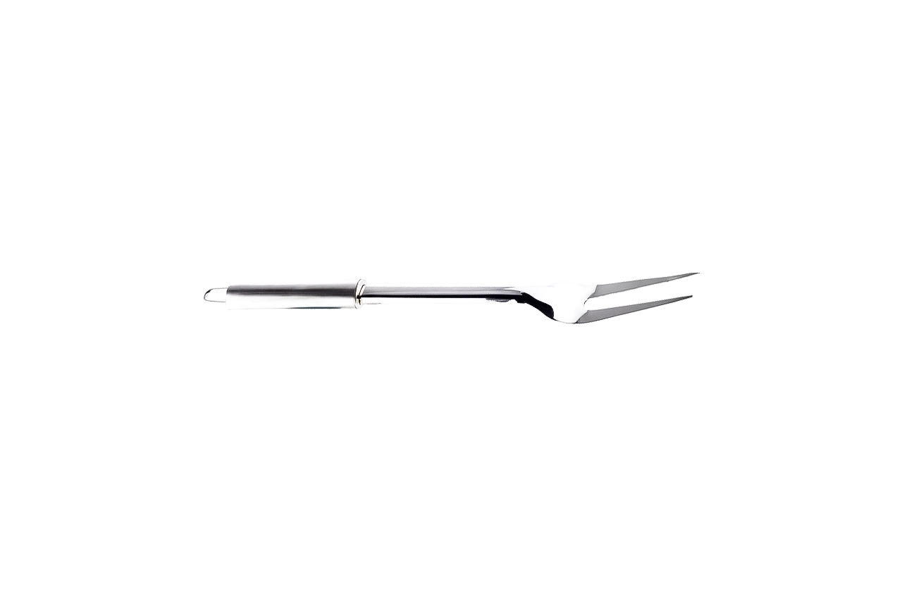 Велика поварская вилка Empire загальною довжиною 300 мм знадобиться для швидкої, а головне, зручною виїмки шматочків м'яса з котлів, каструль. Виконана з харчової нержавійки, вона проявляє підвищену стійкість до ударів, не окислюється і, на відміну від пластикових аналогів, не фарбується продуктами. До інших достоїнств приладу слід віднести зручну форму, ергономічний дизайн і добре відполіровані зубці, які в майбутньому не дають задирок. Довжина ручки - 200 мм. Робоча частина вдвічі менше. Вилки даного зразка поставляються в кульочках.