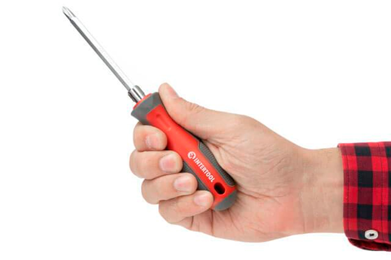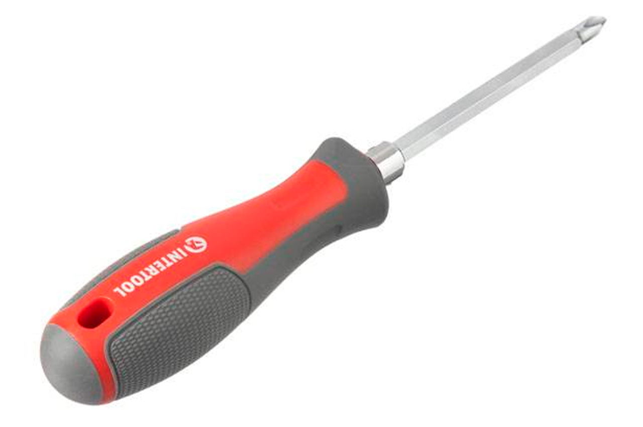 Двостороння викрутка призначена для монтажу і демонтажу різьбових з'єднань з типом шліца: PH2, SL6. Виготовлена за останніми технологіями і відповідає високим запитам майстрів. Чи стане відмінним помічником в домашньому арсеналі інструменту, а також у власній майстерні, на виробництві. Висока якість стали Стрижень викрутки виготовлений з Cr-V стали, яка відома всім майстрам своєю надійністю і витривалістю. У складі цієї стали присутні хром і ванадій, які надають виробу високу стійкість до зношування. Також сталь відрізняється довговічністю і не схильна до крихкого руйнування. Інструмент покритий антикорозійним шаром. Двосторонній стрижень Два типу насадок розміщені на одному стрижні, що дозволяє швидко змінити шліц, не відволікаючись від роботи. Жало надійно кріпиться до корпусу викрутки за допомогою фіксуючого кульки. Зручна рукоятка Форма ручки забезпечує максимальну ефективність від прикладеного зусилля. Двокомпонентна рукоятка гарантує відмінне зчеплення навіть з вологими або слизькими руками, завдяки гумовим вставкам. Матеріал стержня викрутки: Cr-V сталь; Довжина стержня: 100 мм; Довжина викрутки: 210 мм; Матеріал рукоятки: двокомпонентна, прогумована
