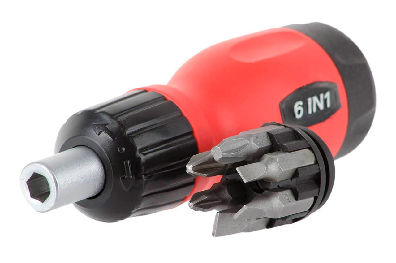 Викрутка реверсивного VT-1009 виключає перехоплення рукоятки після кожного повороту гвинта, що забезпечує зручність при роботі з однією рукою. Ергономічна прогумована рукоятка забезпечує зручність захоплення, а також виключає прослизання інструменту. У наборі 6 біт. Магнітний фіксатор дозволяє швидко і надійно фіксувати біти. Кількість насадок: 5 од .; Магніт: є; Наявність реверсу: є
