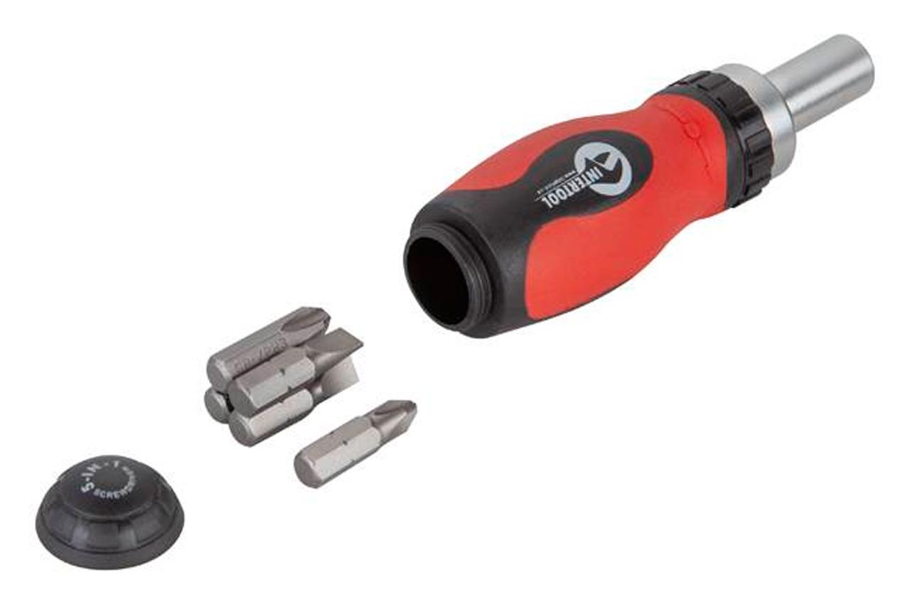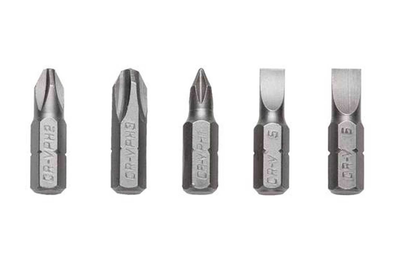 Викрутка реверсивна зі змінними бітами: SL5, SL6, PH1, PH2 і PH3. Кількість насадок: 5 од .; Магніт: є; Наявність реверсу: є