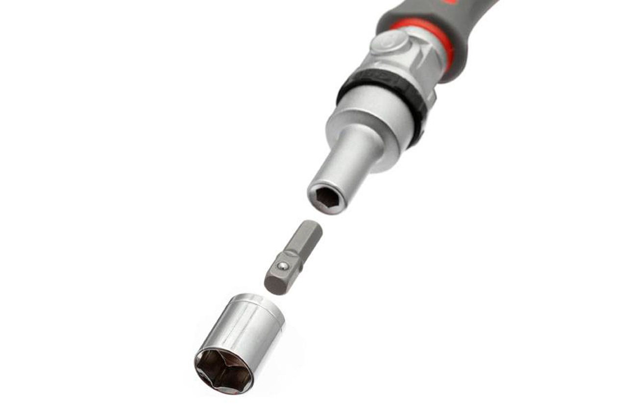 Викрутка з комплектом насадок і головок виготовлена за останніми технологіями і відповідає високим запитам майстрів. Призначена для монтажу і демонтажу різьбових з'єднань різних видів. Така реверсивна викрутка стане відмінним помічником в домашньому арсеналі інструменту, а також у власній майстерні, на виробництві. Висока якість стали Всі комплектуючі набору виготовлені з міцної Cr-V стали, яка відома всім майстрам своєю надійністю і витривалістю. У складі цієї стали присутні хром і ванадій, які надають виробу високу стійкість до зношування. Також сталь відрізняється довговічністю і не схильна до крихкого руйнування. Інструменти покриті антикорозійним шаром. Викрутка з карданом і храповим механізмом Відмінною особливістю даної моделі викрутки є можливість повороту держателя з насадкою, за принципом кардана. Усередині викрутки також встановлено магніт для надійного утримання біт. Храповий механізм в поєднанні з карданом, дозволяє працювати інструментом в обмеженому просторі і в важкодоступних місцях, де немає місця для маневрів. Зручна рукоятка Форма ручки забезпечує максимальну ефективність від прикладеного зусилля, а наявність реверсу робить роботу більш комфортною. Двокомпонентна рукоятка гарантує відмінне зчеплення навіть з вологими або слизькими руками, завдяки гумовим вставкам. Біти і головки розміщені в власниках і не випадають. Ви швидко знайдете необхідну насадку, завдяки нанесеній маркування під кожною клітинкою. Комплектація Викрутка реверсивна з карданом 1/4 "; біти: SL4, SL6, PH1, PH2, PH3, PZ1, PZ2, PZ3, H4, H6; адаптер, 25мм; головок 1/4 '': 4, 5, 6, 7 , 8, 9, 10, 11, 12 мм. Кількість одиниць в наборі: 21 од .; Матеріал рукоятки: прогумована, двокомпонентна; Магніт: є