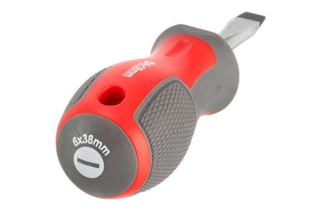 Викрутка виготовлена за останніми технологіями і відповідає високим запитам майстрів. Призначена для монтажу і демонтажу різьбових з'єднань з типом шліца SL6. Така викрутка стане відмінним помічником в домашньому арсеналі інструменту, а також у власній майстерні, на виробництві. Висока якість стали Стрижень викрутки виготовлений з міцної Cr-V стали, яка відома всім майстрам своєю надійністю і витривалістю. У складі цієї стали присутні хром і ванадій, які надають виробу високу стійкість до зношування. Також сталь відрізняється довговічністю і не схильна до крихкого руйнування. Конструкція викрутки продумана до дрібниць Стрижень глибоко посаджений в рукоятку і кріпитися в двох місцях, що виключає можливість зриву. Намагнічений наконечник Викрутка має посилений магнітний наконечник, який утримує кріплення і полегшує роботу в важкодоступних місцях. Зручна рукоятка Форма ручки забезпечує максимальну ефективність від прикладеного зусилля. Прорезиненная двокомпонентна рукоятка зручно лежить в руці і не вислизає з долоні. Яскрава маркування на кінці дозволяє швидко знайти необхідний тип і розмір викрутки. Матеріал стержня викрутки: Cr-V сталь; Матеріал рукоятки: двокомпонентна, прогумована; Довжина викрутки: 38 мм