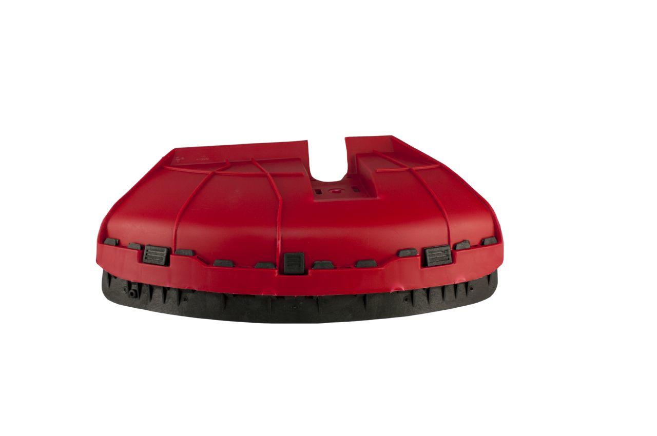 Кожух нижнього редуктора пластиковий. Захищає від викиду гравію, дрібних частинок землі, піску, каменів, трави і т.д. А так же служить кріпленням для ножа, який регулює довжину волосіні. Захист нижнього редуктора мотокоси посилена ребрами жорсткості. Виготовлена з високоякісної ударо міцної пластмаси.