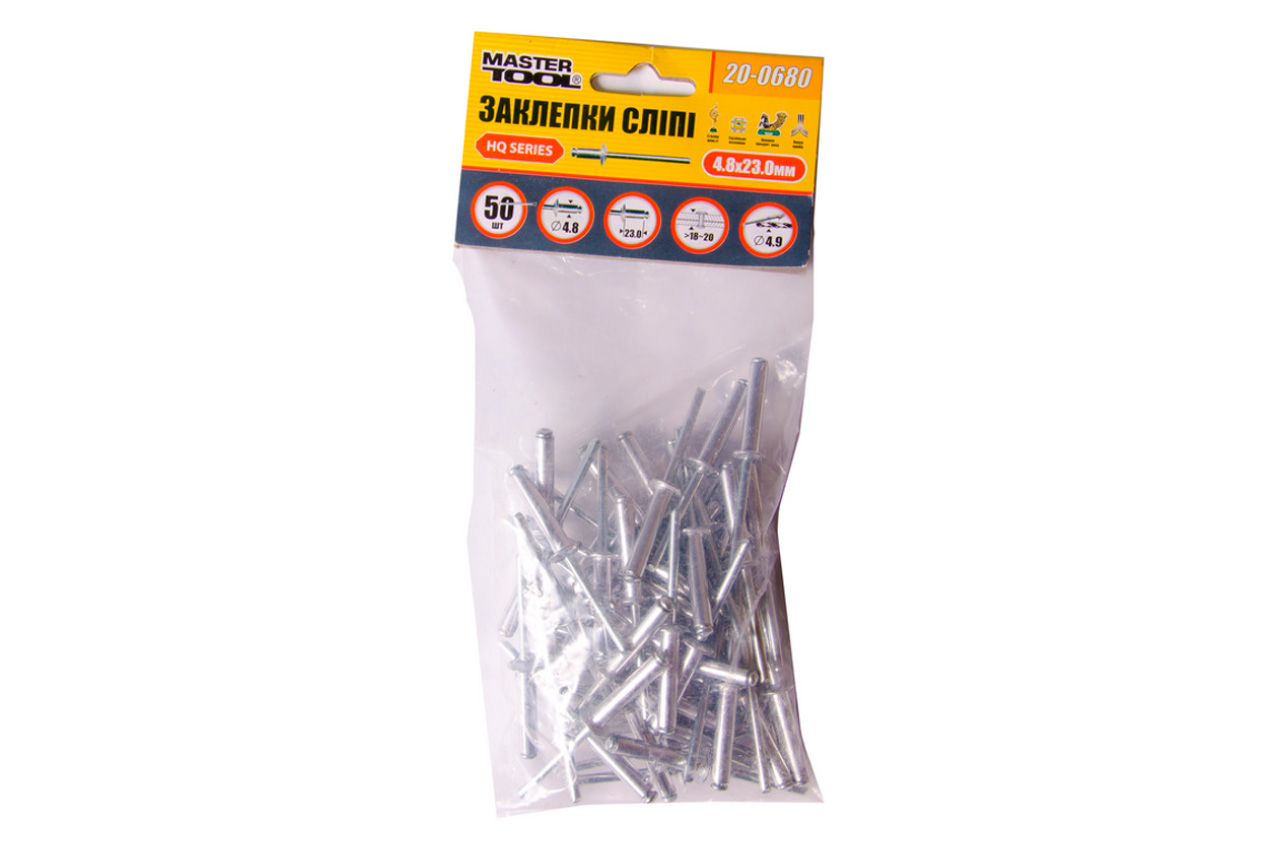Заклепки діаметром 4,8 мм і довжиною 23,0 мм. В упаковці 50 шт.