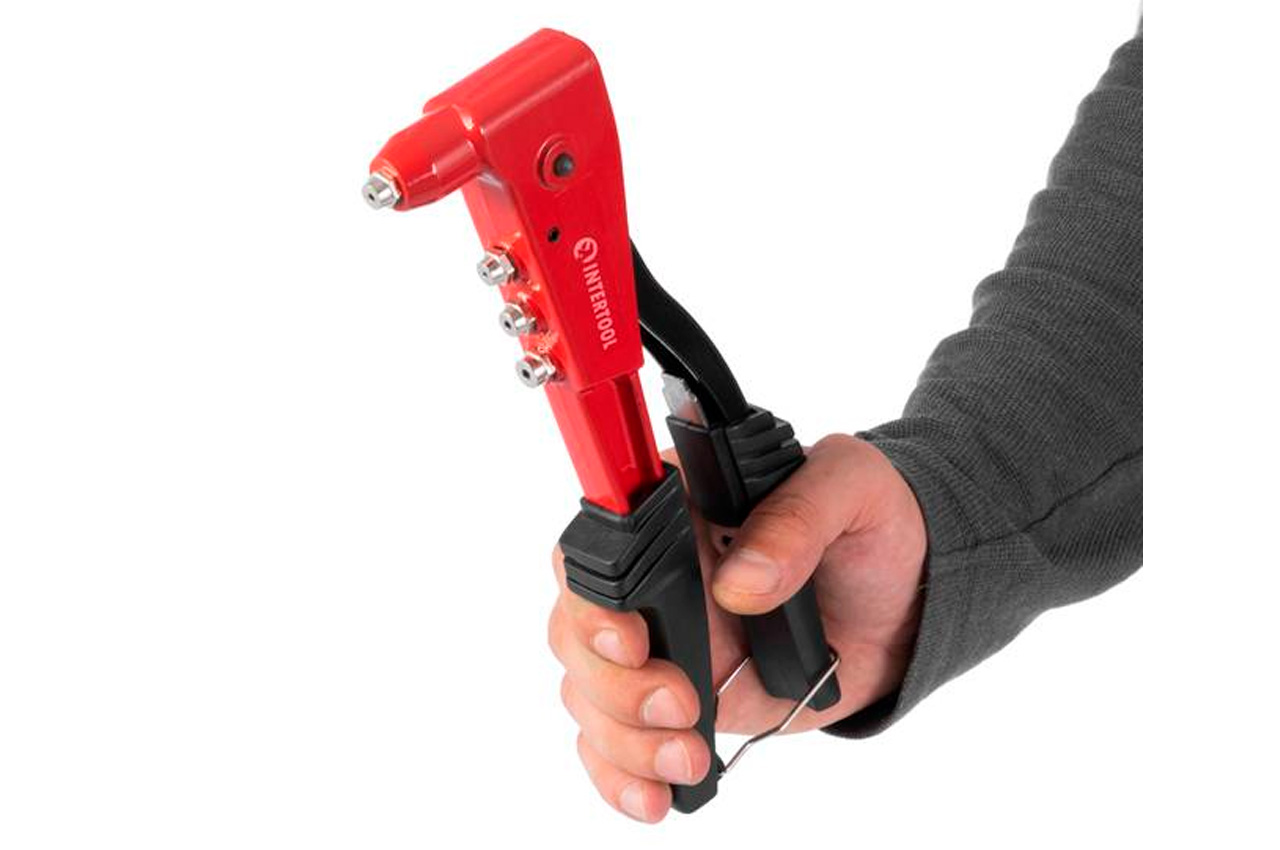 Піcтолет заклепувальний ручний призначений для міцного з'єднання металевих листів і заготовок за допомогою сталевих або алюмінієвих заклепок діаметром 3.2, 4 і 4.8 мм. Литий корпус має високу міцність і зносостійкість. Гумові наконечники на рукоятках інструменту запобігають ковзанню під час роботи.