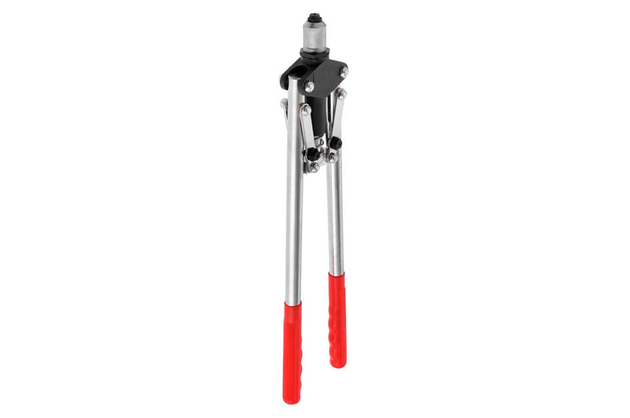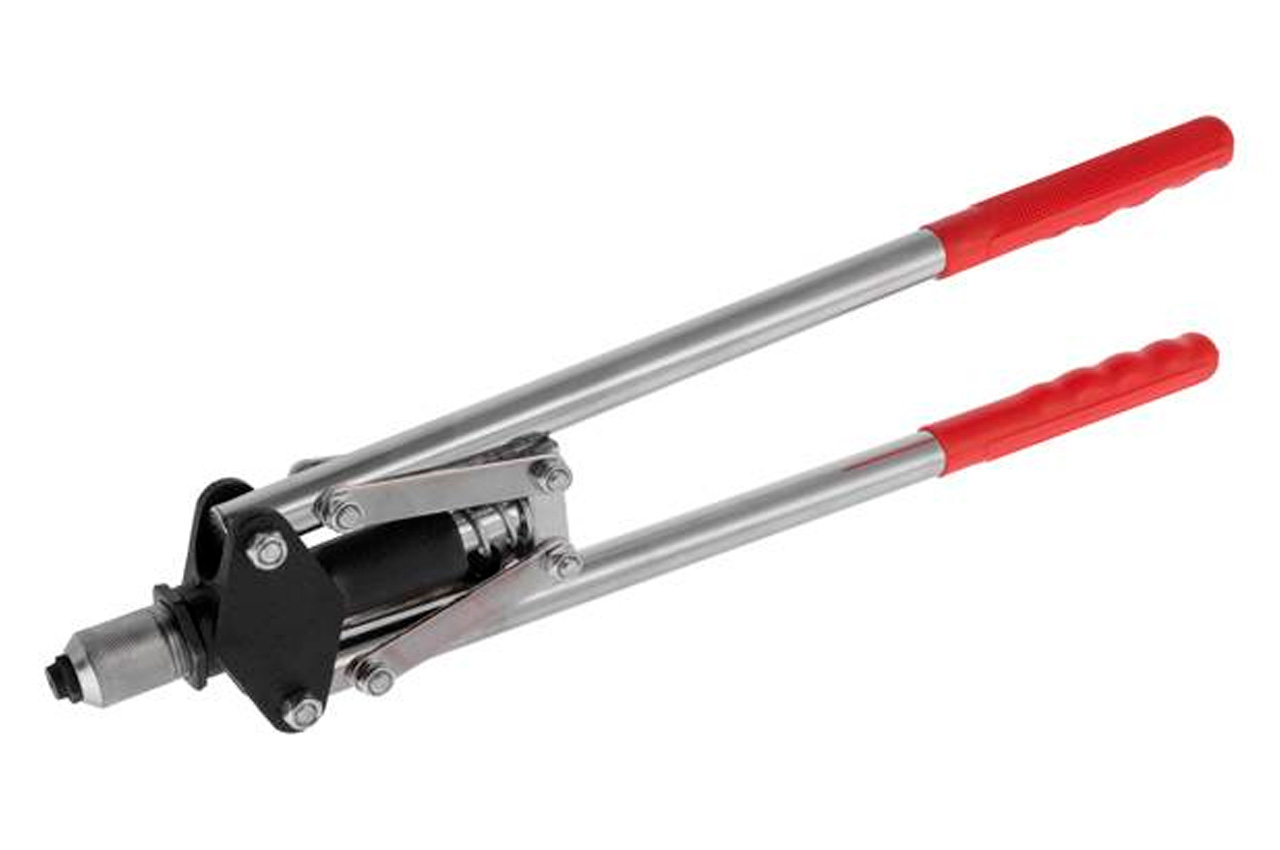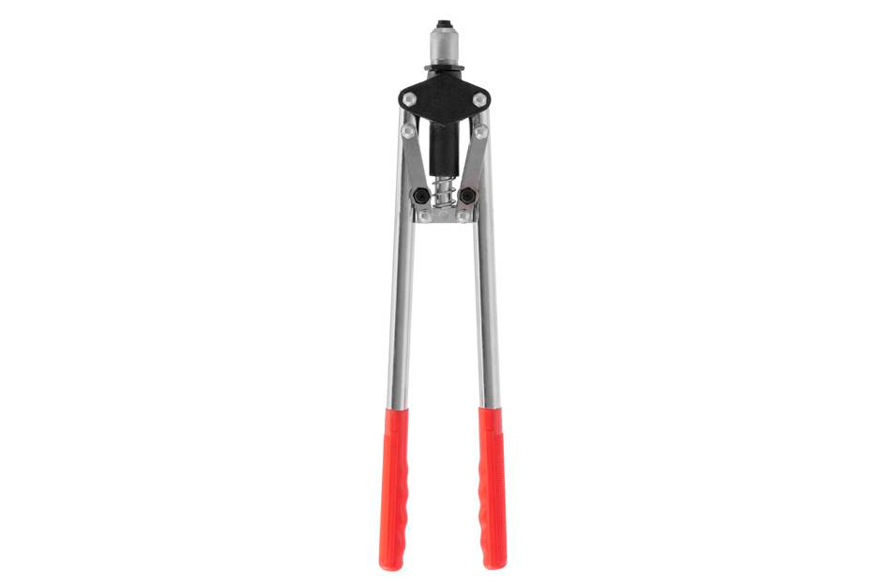 Професійний інструмент, призначений для роботи з витяжними алюмінієвими і сталевими заклепками діаметром 3.2, 4 і 4.8 мм. Виготовлений з високоякісної сталі, має високу міцність і зносостійкість. Рукоятки інструменту довжиною 420 мм оснащені пластиковими наконечниками, що забезпечують надійне захоплення в руці. Діаметр заклепки: 3.2, 4, 4.8 мм