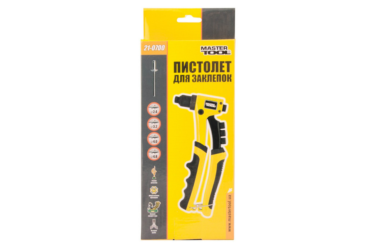 Пістолет для заклепок "Профі". CrMo сталь. Довжина - 200 мм. Використовується для заклепок діаметром 2.4, 3.2, 4.0 і 4.8 мм.