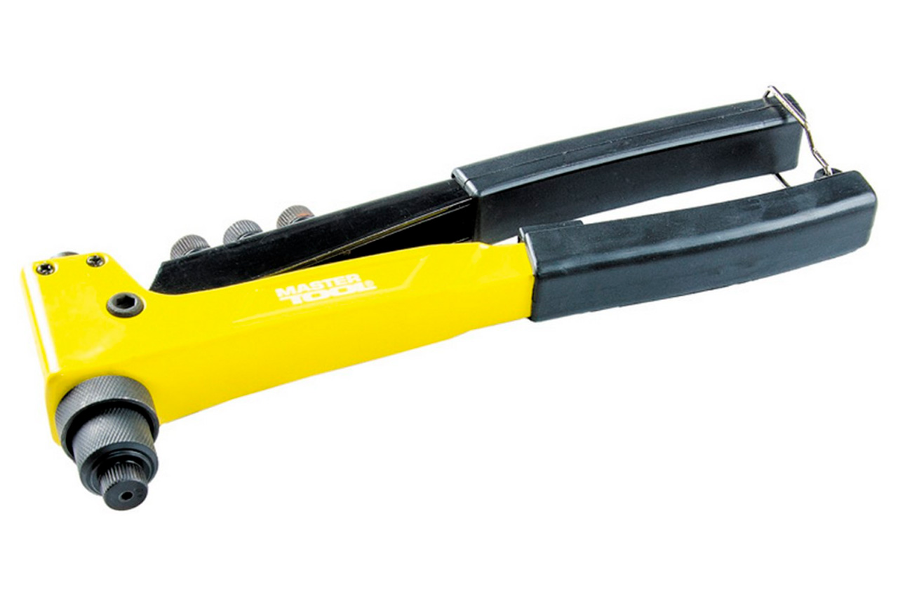 Призначений для скріплення поверхонь заклепками з алюмінію, сталі, нержавіючої сталі. Металевий, хромований, має силовий механізм важеля. Оснащений обгумованими рукоятками, укомплектований ключем. Змінні насадки для заклепок Ø 2,4/3,2/4,0/4,8 мм. 3 тягнуть губки.