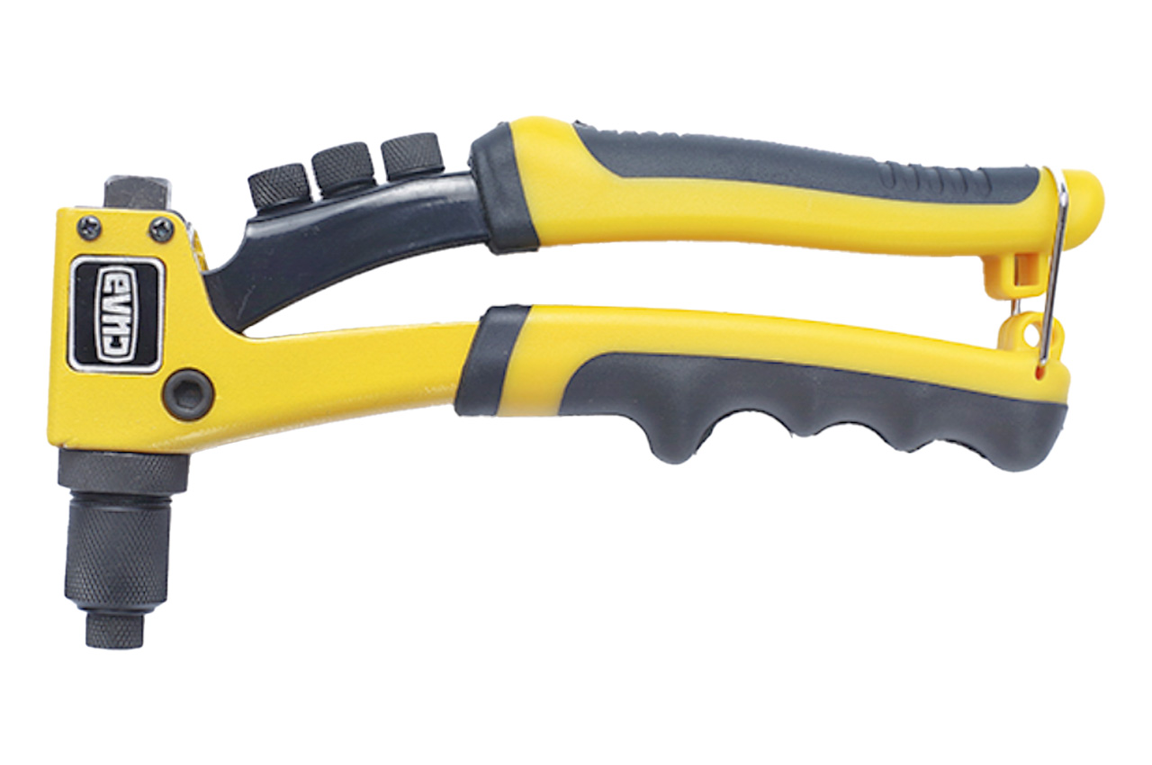 Механізм з трьома губками запобігає перекосу і заклинювання при установці заклепок. «Губки» з хромомолібденової стали мають високу міцність. Корпус зі сталі, покритий спеціальною фарбою з високою стійкістю до корозії і механічних пошкоджень. Матеріал / покриття губок: хром-ванадієва сталь; Матеріал / покриття корпусу: інструментальна сталь; Матеріал / покриття рукоятки: хром-молібденова сталь; Насадки для заклепок: 2,4 мм; 3,2мм; 4,0мм; 4,8 мм