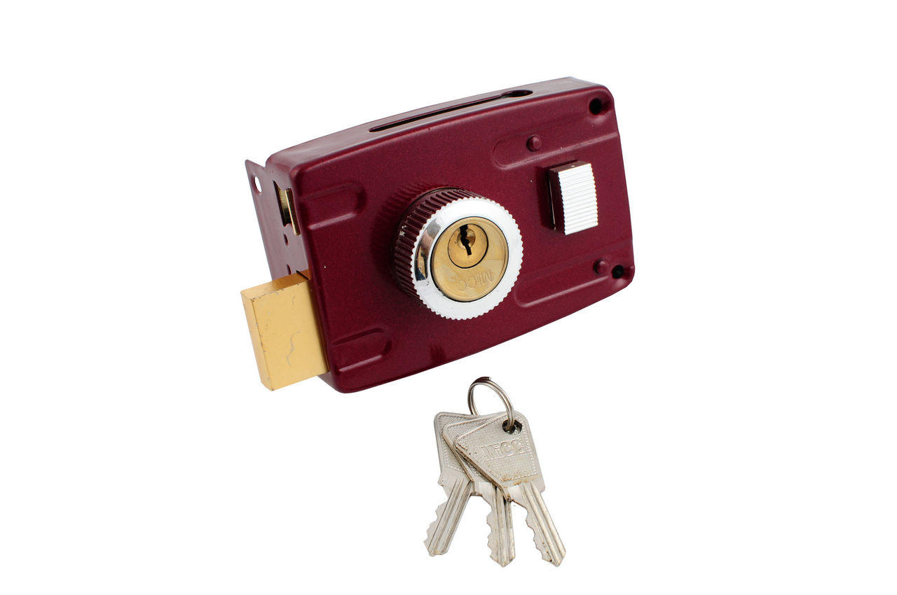 Замок накладний з одним прямокутним штирем засува і запобіжної ланцюжком, має механізм автоматичного замикання і запобіжник. Призначений для замикання дверей товщиною 35- 45 мм. Модель універсальна і підходить для замикання як правою, так і лівою двері.