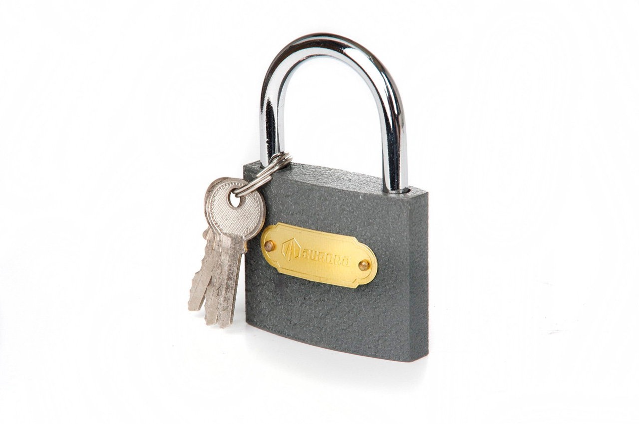 Замок навісний Aurora - практичний та довговічний замок для побутового та господарського використання. Обладнаний надійним циліндровим механізмом (англійський тип), який забезпечує зручне замикання та підвищену безпеку. Металевий корпус із сірим покриттям стійкий до корозії й зношування.