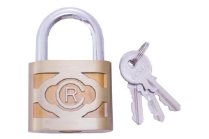Замок навісний FZB має металеву дужку і литий корпус шириною 63 мм, виготовлений з металу з антикорозійним покриттям жовтого кольору, на корпусі є декоративне тиснення. У комплекті з замком три лазерних ключа.