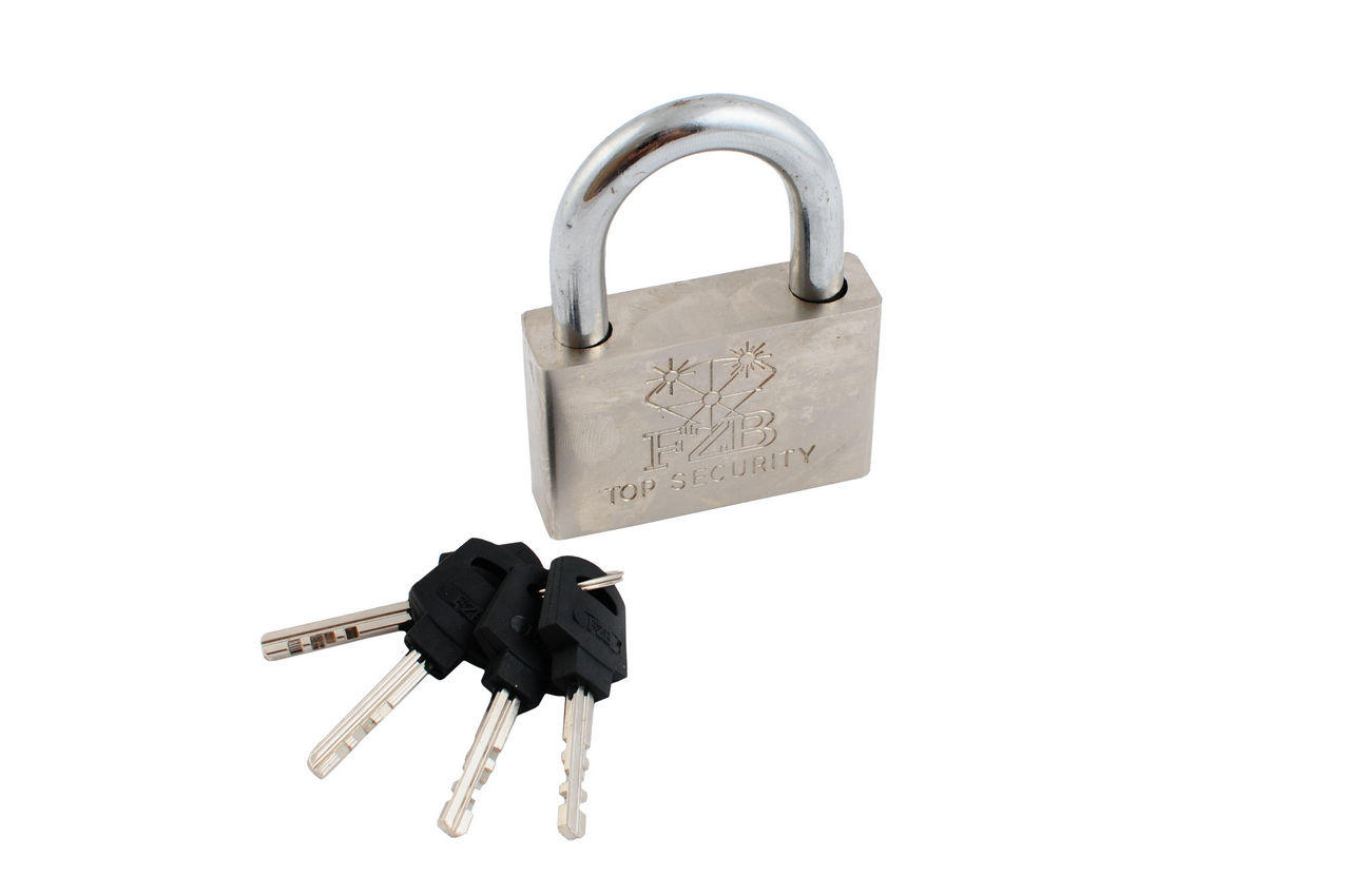 Замок навісний FZB виготовлений з нержавіючої сталі, має литий корпус шириною 70 мм, на корпусі нанесена декоративна гравірування. У комплекті з замком чотири ключа.